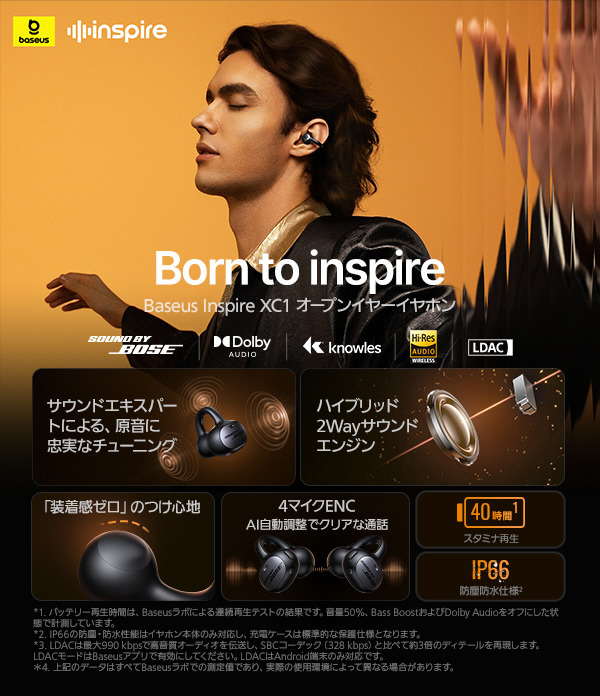 その音響哲学を受け継ぎ、オープンイヤー型とは思えないほどの深みと臨場感のある高音質を実現しました。