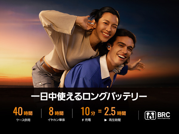 ノンストップで音楽とともに過ごせるロングバッテリーと急速充電機能。