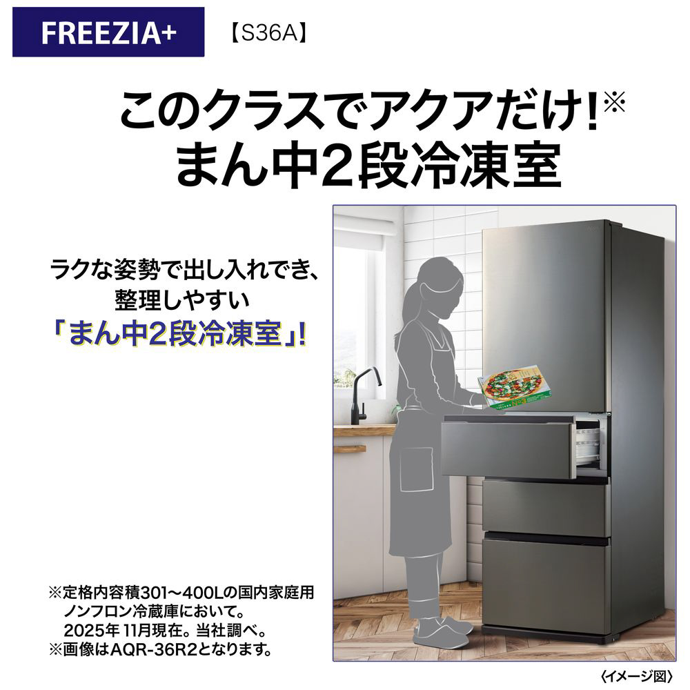 362L4ドア冷蔵庫 AQUA ブライトシャンパン AQR-S36A(N) [60 /362L /4ドア /右開きタイプ /2025年]【基本設置料金セット】
