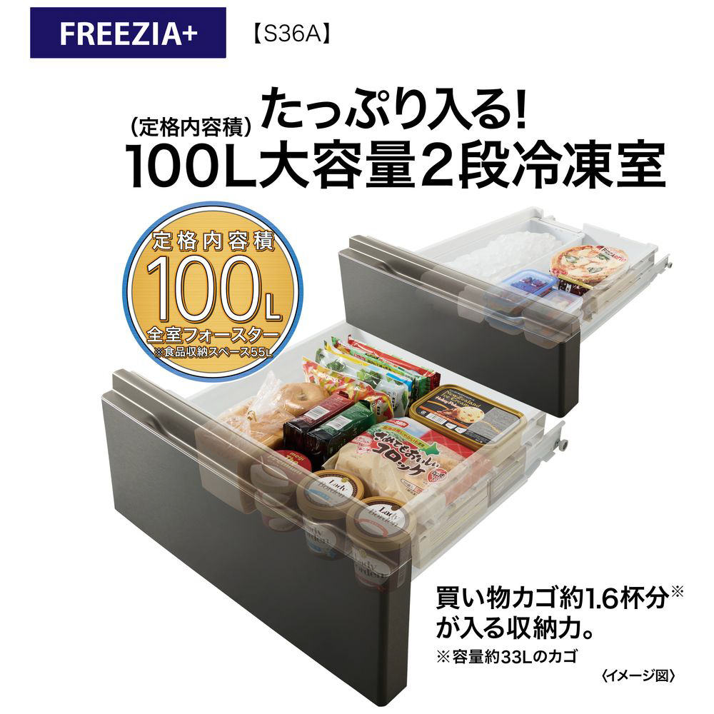 大容量まんなか冷凍室、インバーター搭載 省エネモデル
