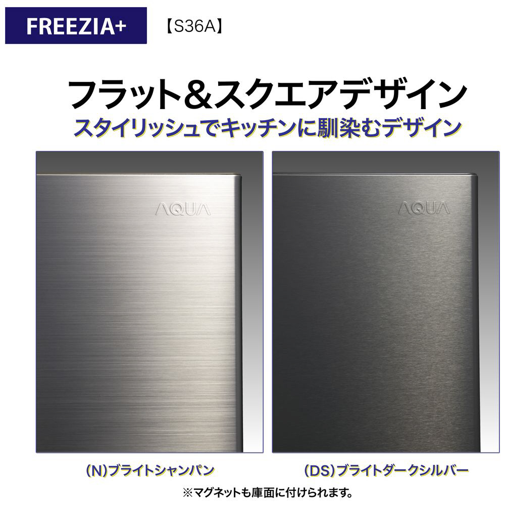 | 商品名 | 362L4ドア冷蔵庫 AQUA ブライトシャンパン AQR-S36A(N) [60 /362L /4ドア /右開きタイプ /2025年]【基本設置料金セット】 |
