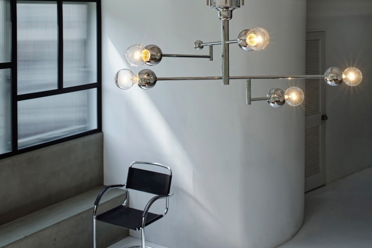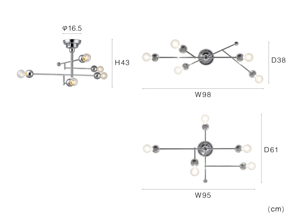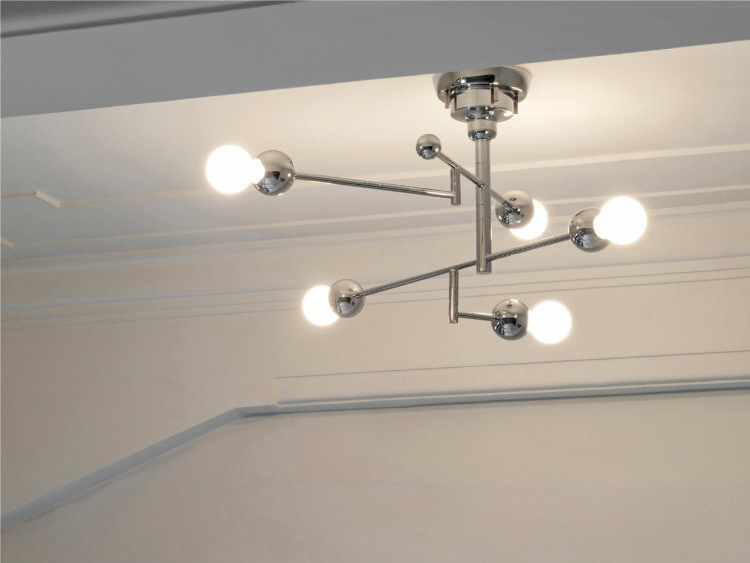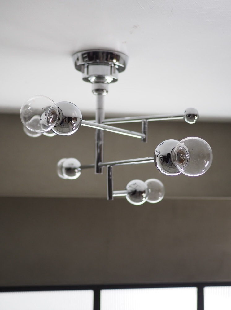■電球ソケット側の球体と直線的なアームの組み合わせが特徴的なシーリングライト