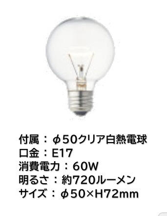 ■電球:φ50クリア白熱電球(E17/60W)×4灯付