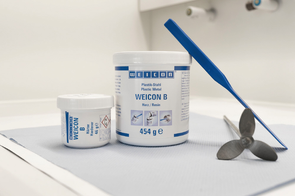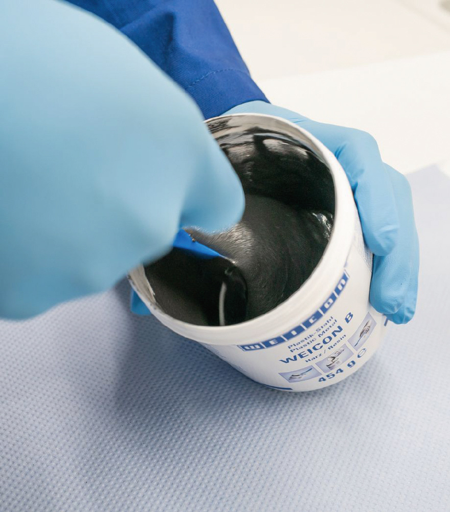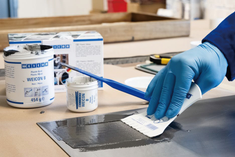 本製品を使用前に塗布する表面の脱脂や埃、錆、汚れを落としてください。平滑な面や特に汚れのひどい表面はさらに研磨工具を使用して表面前処理を行うことを推奨します。物理的な値が大きく逸脱する可能性があるので、混合比は厳密にお守りください。可使時間が60分の為、60分以内に処理できる量のバッチをご用意ください。気泡なく均一に塗布されていることを確認してください。最も高い接着強度が得るには、加工する部品 に35℃以上で加熱してから塗布する。薄いプレコートの場合 WEICON BJを表面に十字に集中的に塗布してください。