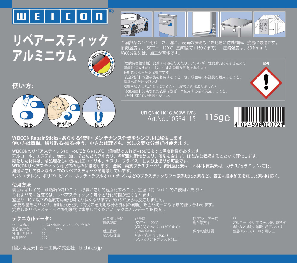 | 商品名 | アルミ用 エポキシ補修パテ リペアスティック 115g 10534115 |