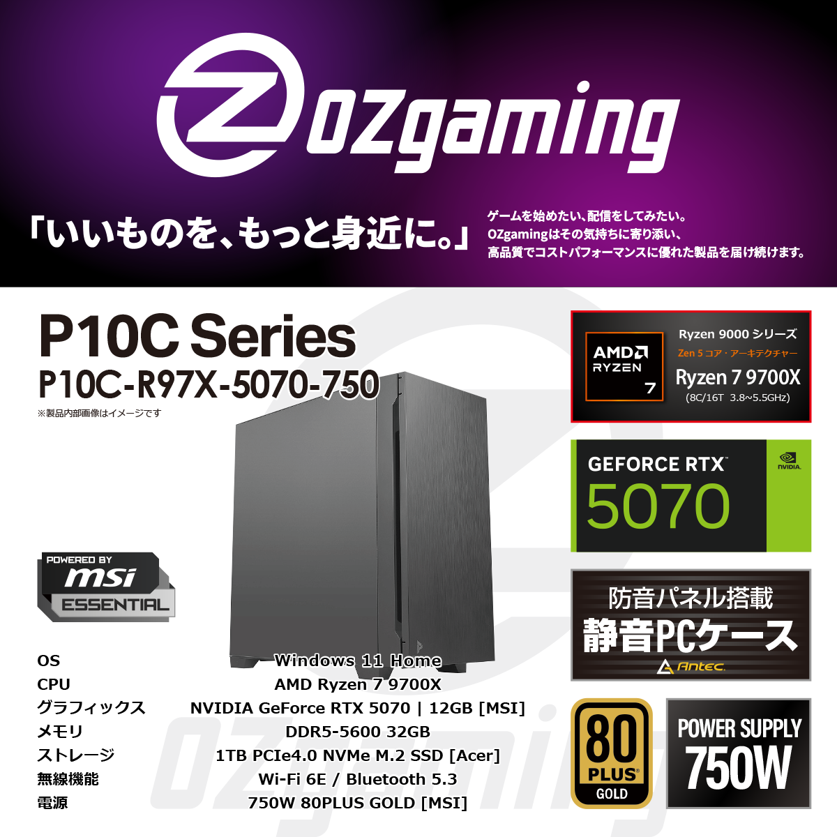 ゲーミングデスクトップパソコン P10C-R97X-5070-750 【Antec P10C series】 [RTX5070]