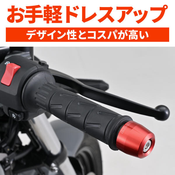 純正ハンドルに装着されているバーエンドと付け替えるだけで、簡単にドレスアップできます