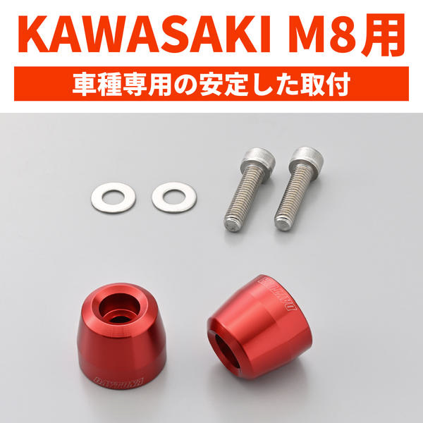 63817 アルミビレットバーエンド 純正ハンドル用 サーフェイス KAWASAKI車 M8タイプ カラー:レッド