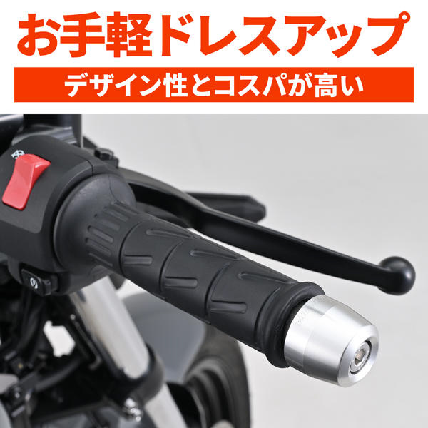 純正ハンドルに装着されているバーエンドと付け替えるだけで、簡単にドレスアップできます