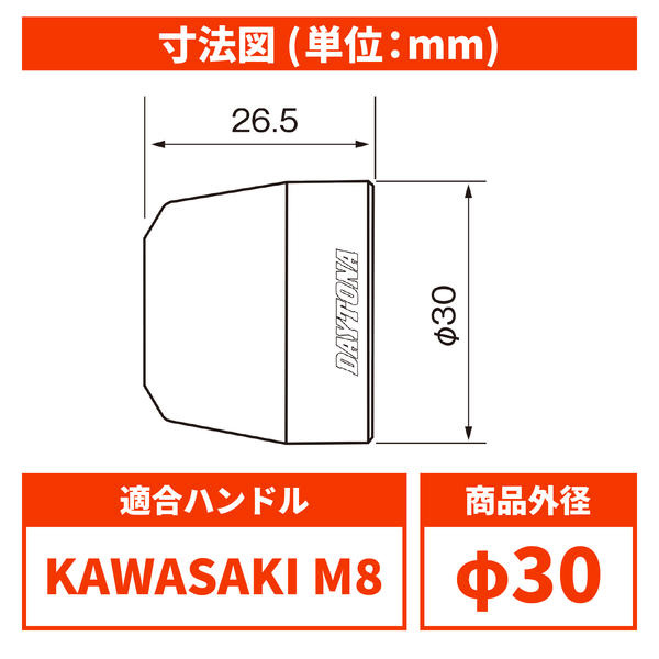 | 商品名 | 63823 アルミビレットバーエンド 純正ハンドル用 サーフェイス KAWASAKI車 M8タイプ カラー:シルバー |