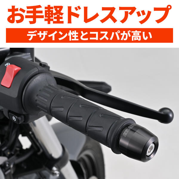 純正ハンドルに装着されているバーエンドと付け替えるだけで、簡単にドレスアップできます