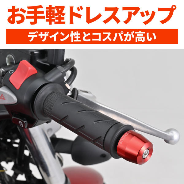 純正ハンドルに装着されているバーエンドと付け替えるだけで、簡単にドレスアップできます