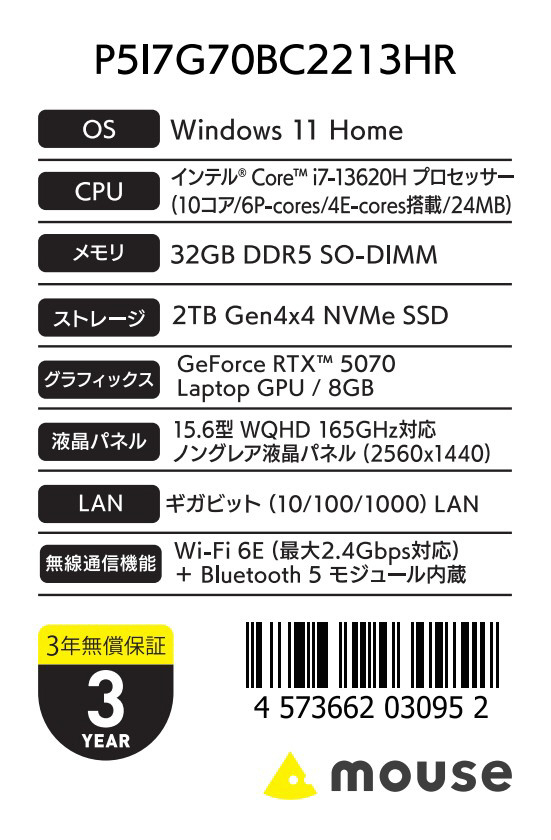 ※ゲーミングノートPCには基本的にマウスが付属しておりません。