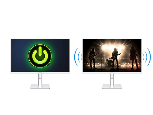 ■本体カラーにホワイトを採用。モニターベゼルも白となっており、爽やかでおしゃれな空間を演出したい場合や、デバイスを白で統一したい場合に最適です。さらに、付属の電源アダプター、ケーブル類にもホワイトカラーを採用。全体が白基調に統一された部屋や医療機関などでの使用にも最適です。