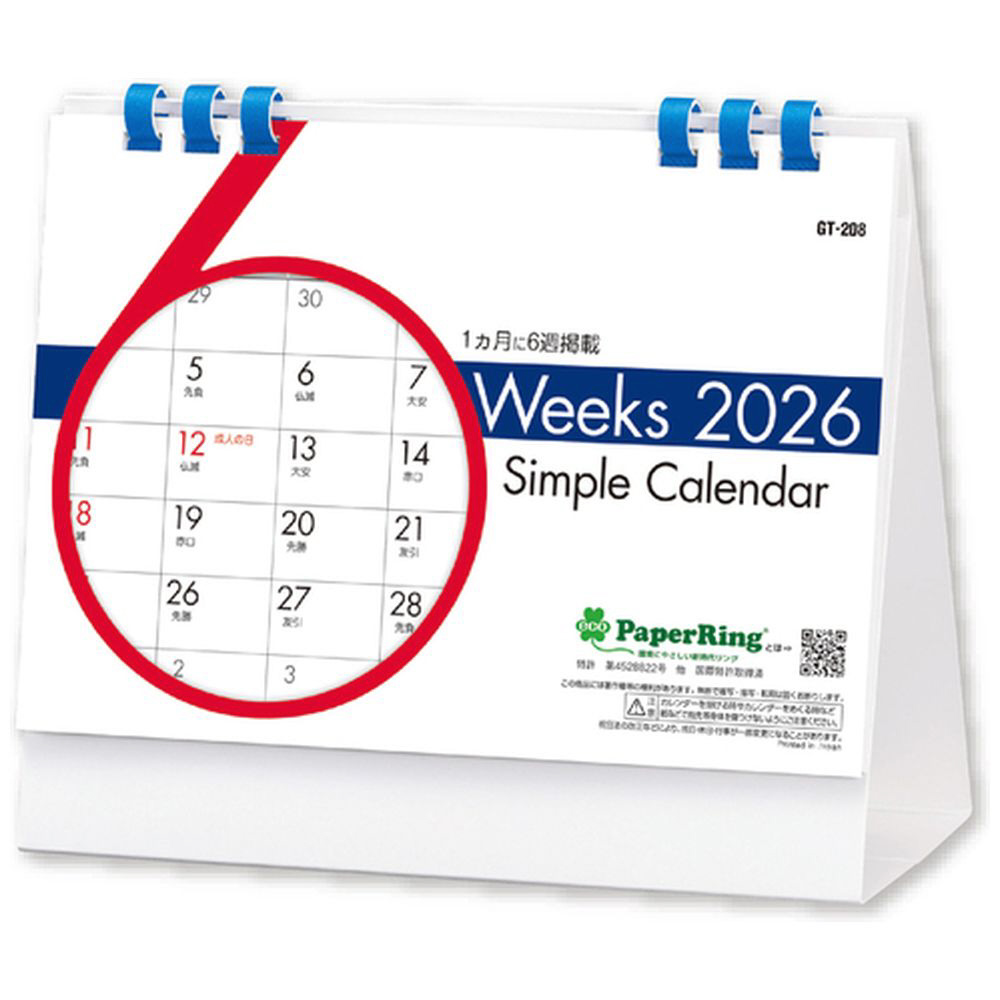 キングコーポ 卓上2026年カレンダー 6ウィークス シンプル2026年カレンダー