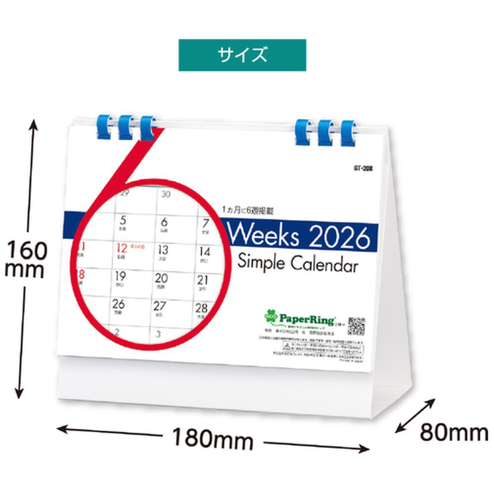 | 商品名 | キングコーポ 卓上2026年カレンダー 6ウィークス シンプル2026年カレンダー |