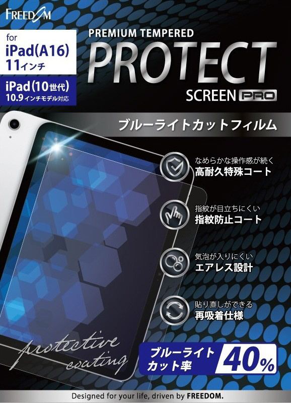11インチ iPad(A16 2025年モデル)、10.9インチ iPad(第10世代)用 ブルーライトカットPETフィルム FTB-IPAP25BLF