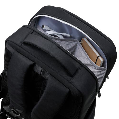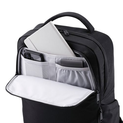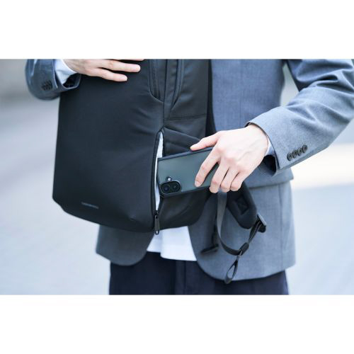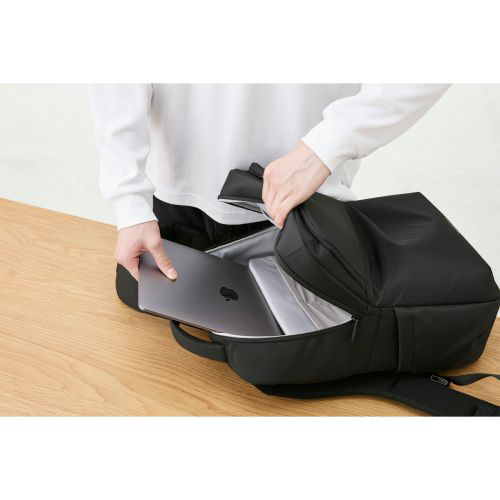 低反発ウェーブカットウレタンフォームがしっかりと衝撃を吸収!大切なノートパソコンを衝撃から守る“ZEROSHOCK”バックパックです。パスケースなど、よく使う小物の収納に便利なクイックアクセスポケット付き。移動中でもサッと取り出せます。