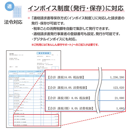 インボイス制度(保存・管理)と電子帳簿保存法へも対応。