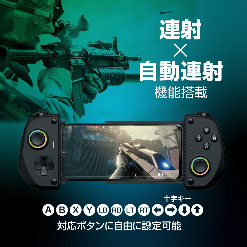 持ちやすさを考えた軽量設計で、スマホゲームを本格的に楽しみたい方に向けた他機種対応スマホコントローラーです。
