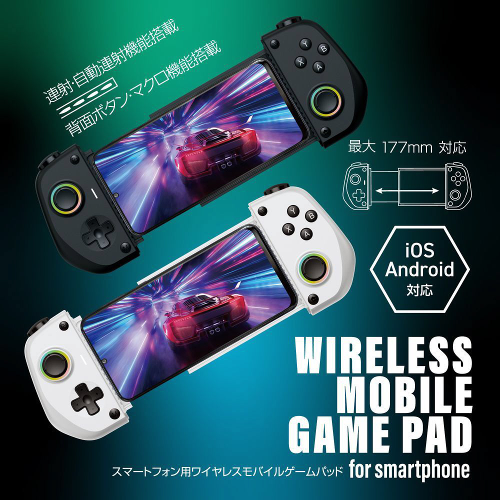 スマホゲームを本格的に楽しみたい方に最適な他機種対応スマホコントローラーが登場!ホワイト・ブラックの2色展開です。