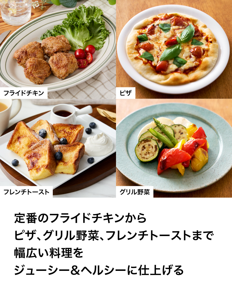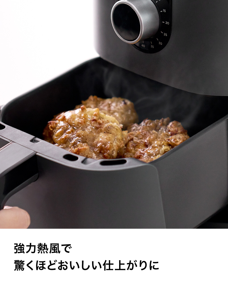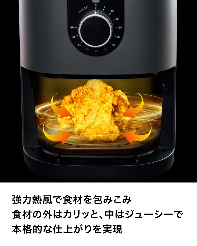 ■強力熱風で食材を包みこみ、食材の外はカリッと、中はジューシーな仕上がりに