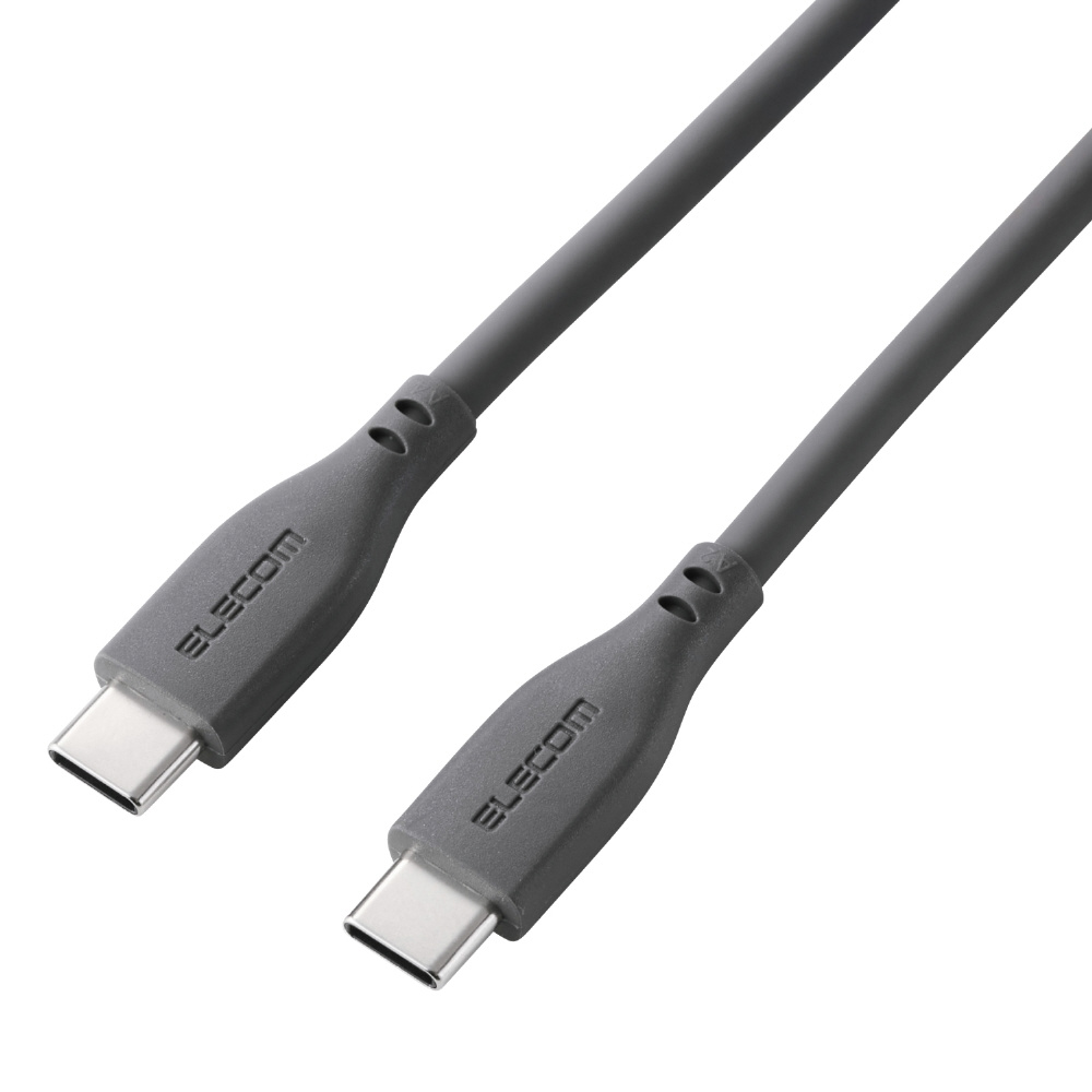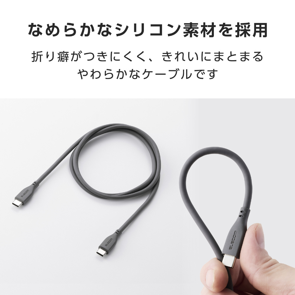 やわらかくなめらかな手触りのシリコン素材を採用したUSB Type-C(TM) - USB Type-Cケーブルです。スマートフォンやタブレット、ノートパソコンなどへの充電とデータ通信が可能です。