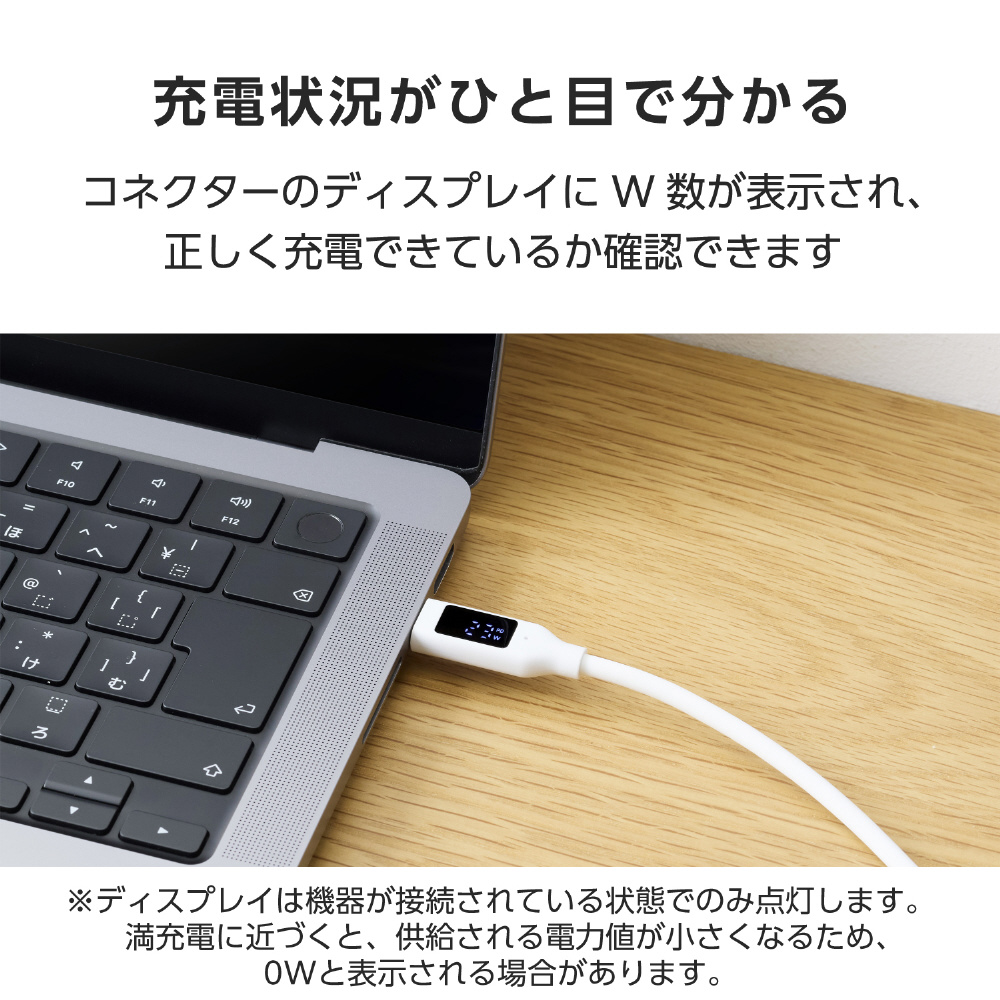 充電状況がひと目で分かる、電力ディスプレイ付きのUSB Type-C(TM)-USB Type-Cケーブルです。
