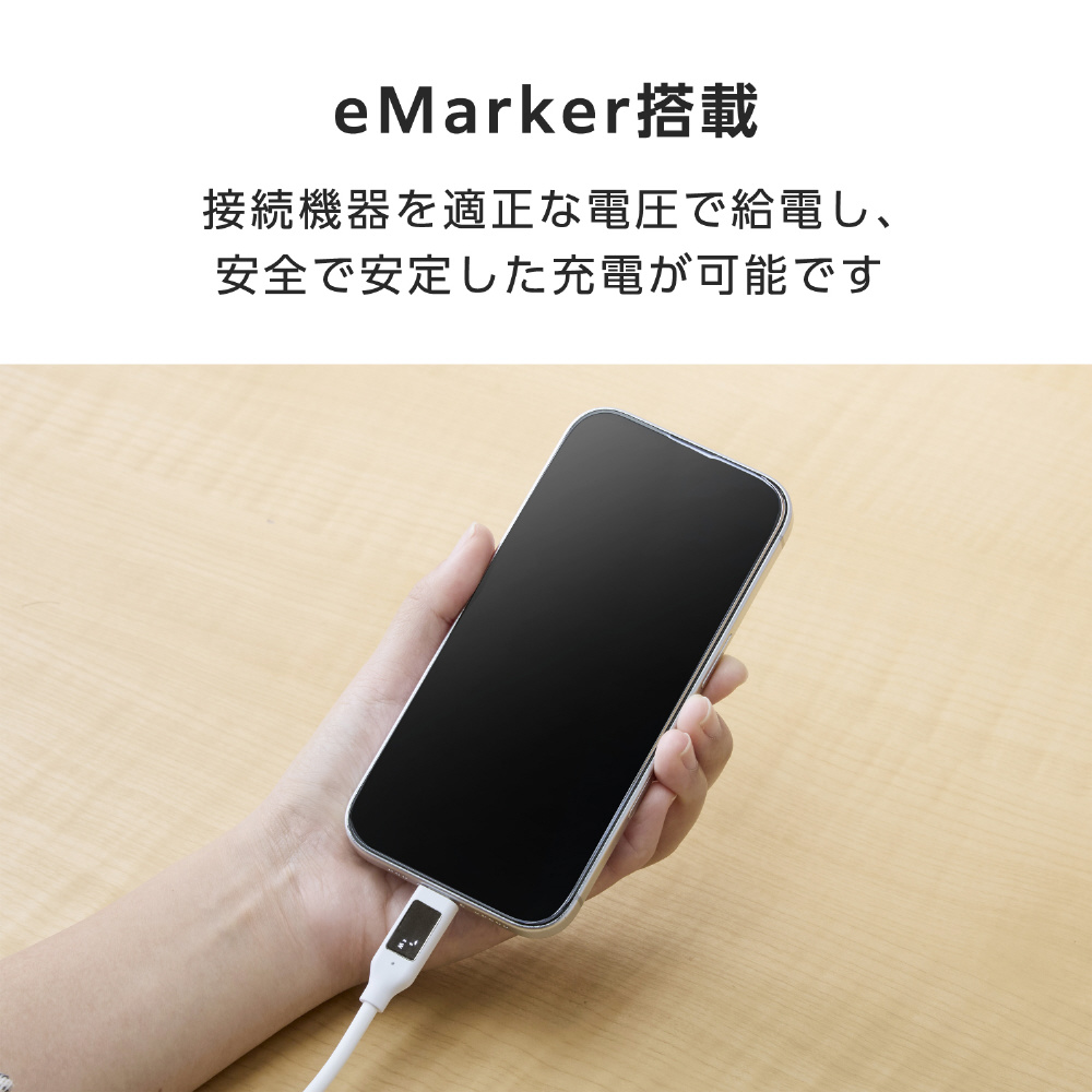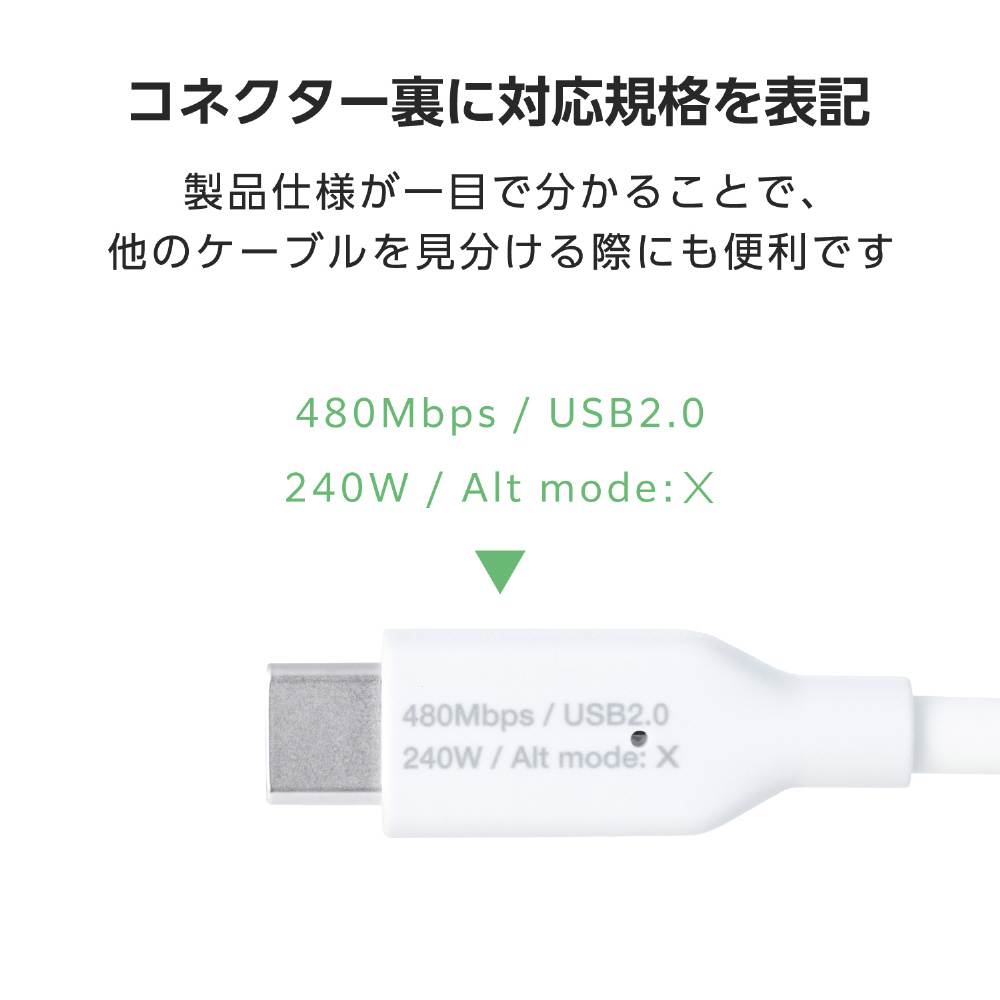 商品名 240W PD EPR USB Type-C ケーブル 2m 電力ディスプレイ付き やわらかシリコン eMarker 480Mbps ホワイト MPA-CCW20WH