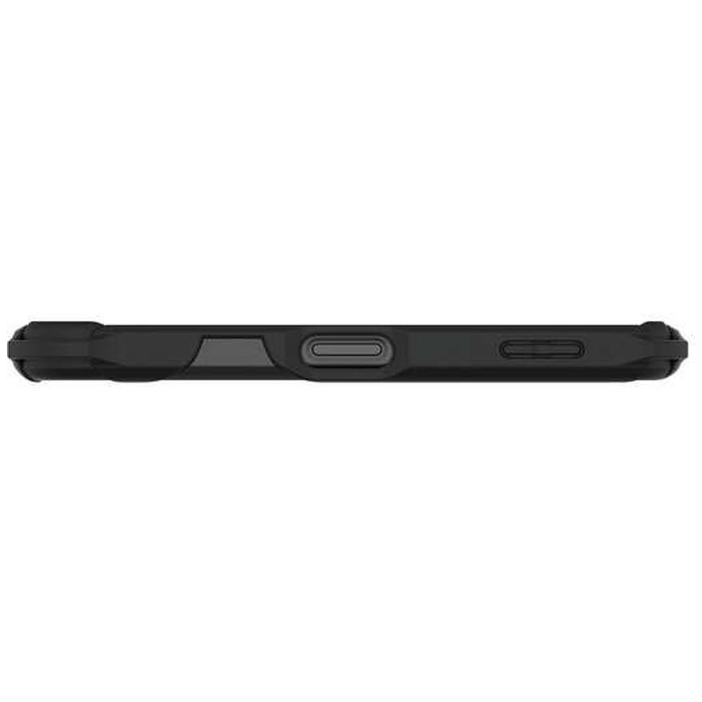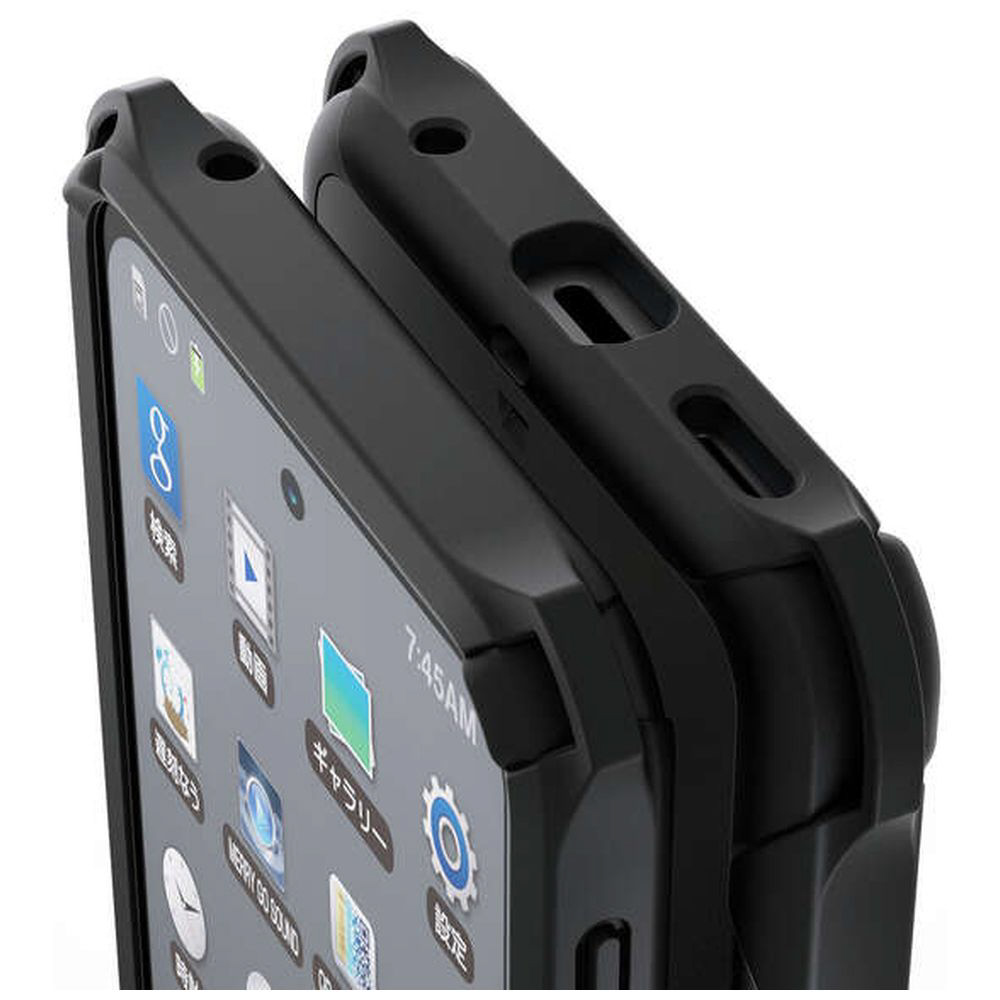 衝撃吸収構造で端末を衝撃から守るZEROSHOCKケースです。落下時に最も大きな衝撃が予想される四つ角にバンパーを設置し、効率的に衝撃を吸収します。衝撃吸収に適したソフト素材と、それを外側から包むハード素材を使用したダブルレイヤー設計を採用しています。