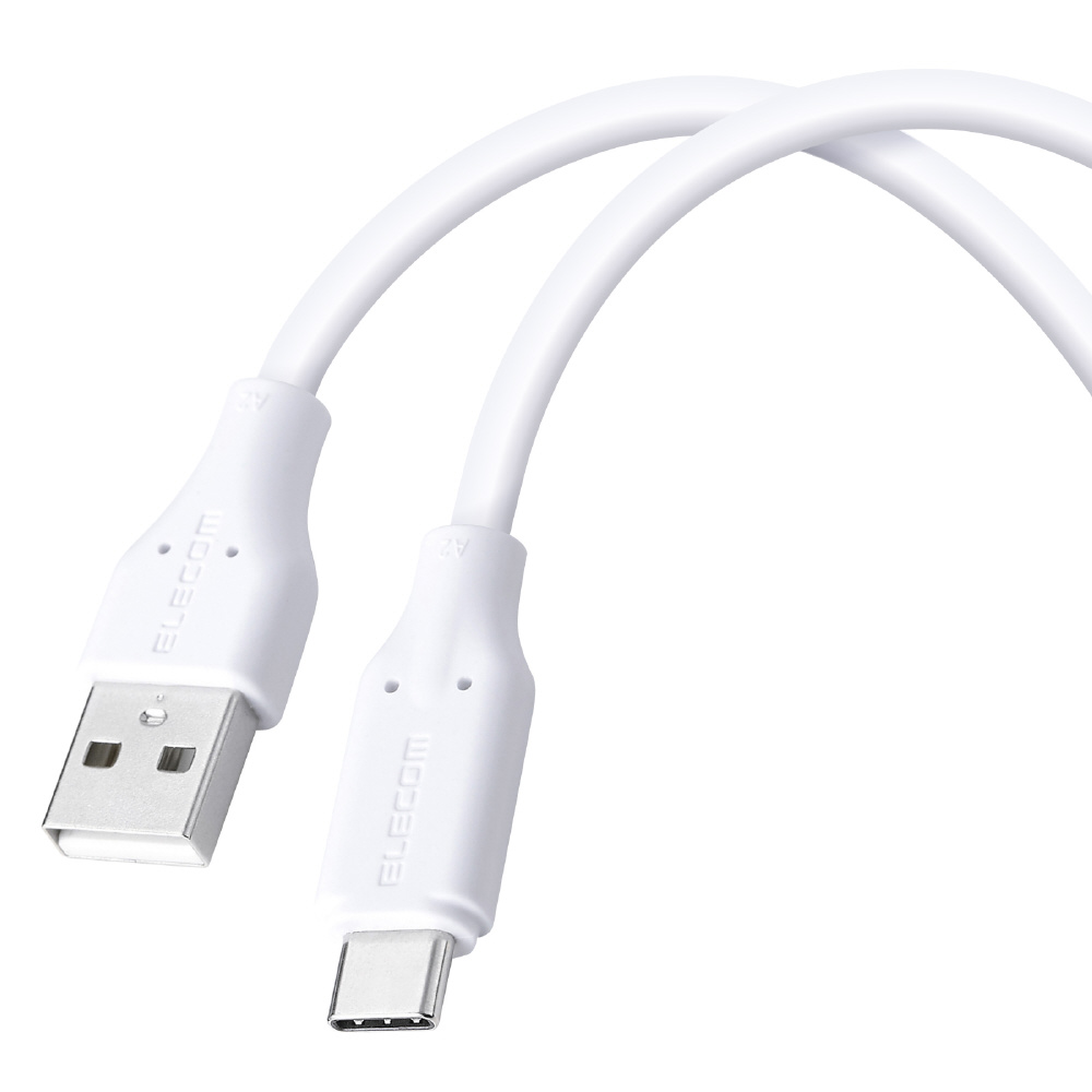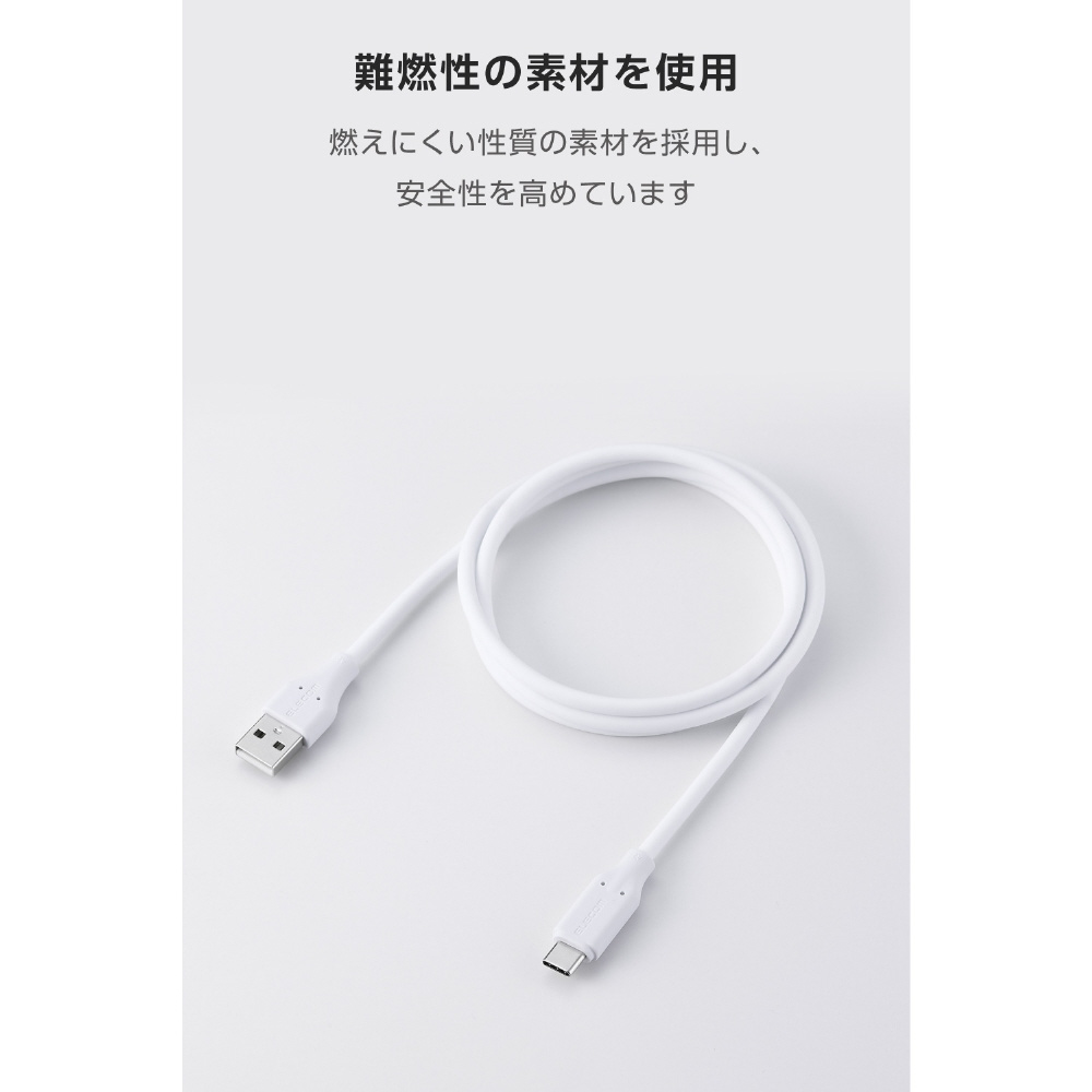 安心と使いやすさを両立!異物の挟み込みや水濡れなどの意図しない接続によるショートや発熱・発火を検知し、自動で電流を遮断するブレーカーを搭載したUSBケーブルです。なめらかな手触りで、やわらかく扱いやすいシリコン素材を採用しています。USB-Aポート搭載のパソコンやAC充電器と、USB Type-C(TM)ポート搭載のスマートフォンなどを接続して、充電やデータ転送ができます。
