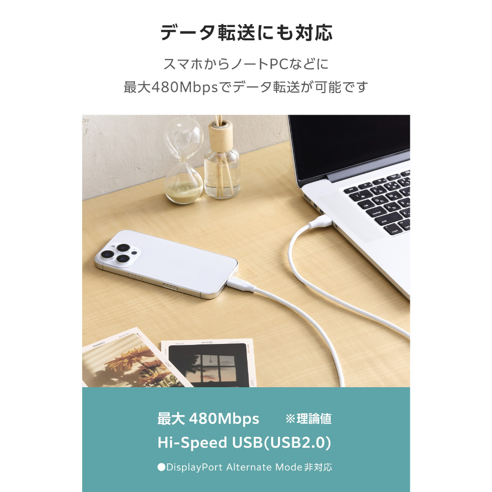 最大480Mbpsのデータ転送が可能です。写真や動画などのデータ移動や同期が快適にできます。 ※理論値