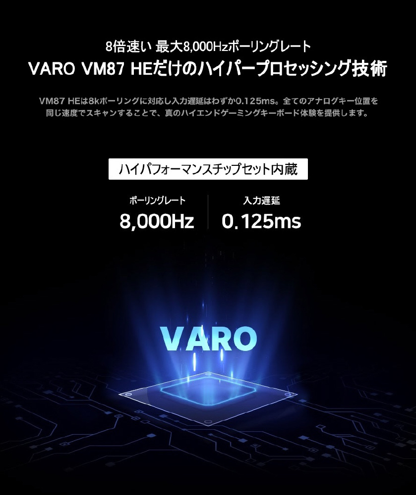 8000Hzの超高速ポーリングレートに対応し、入力遅延はわずか0.125msのハイパフォーマンス仕様。高速で正確な反応を可能にするハイエンドゲーミングキーボードです。