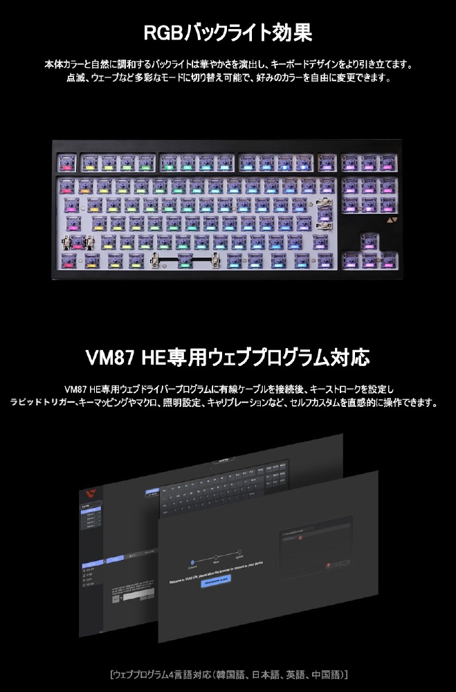 ラピッドトリガー対応の日本語配列80%レイアウト ゲーミングキーボード。