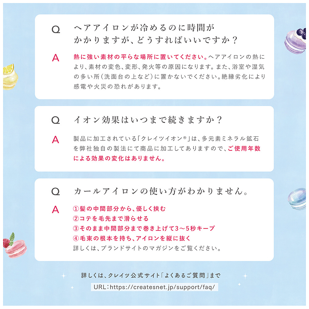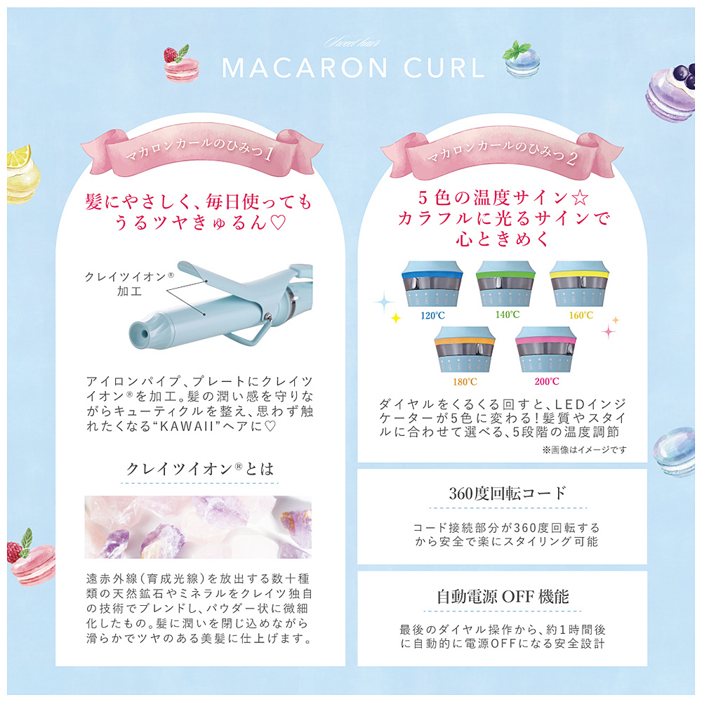 アイロンパイプ、プレートにクレイツイオン(R)を加工。髪の潤い感を守りながらキューティクルを整え、思わず触れたくなるKAWAIIヘアに。