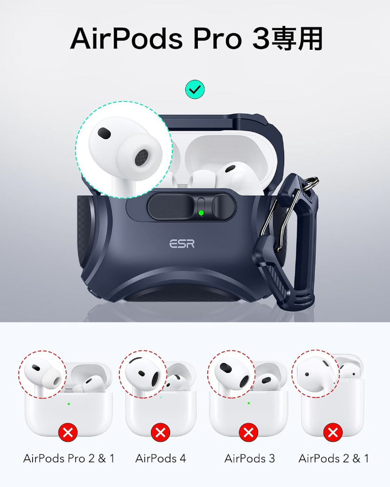 AirPods Pro 3(2025年モデル、USB-Cケーブル対応)専用。AirPods Pro 2/1(2023/2022/2019モデル)には対応していません。