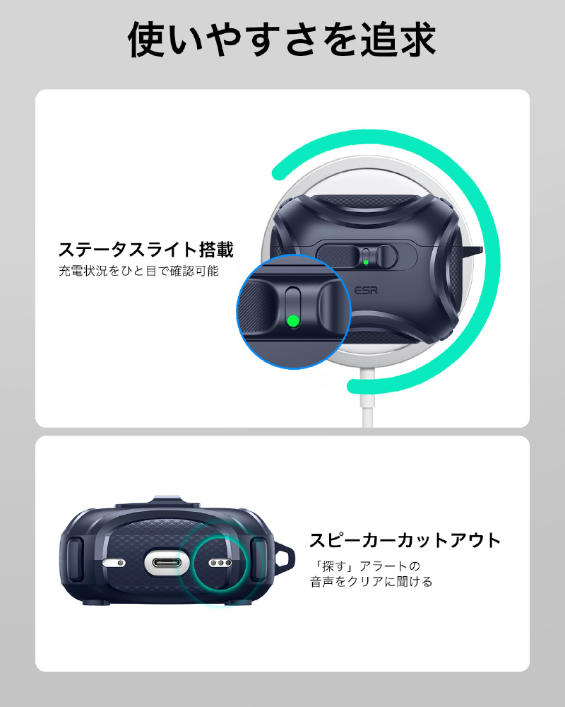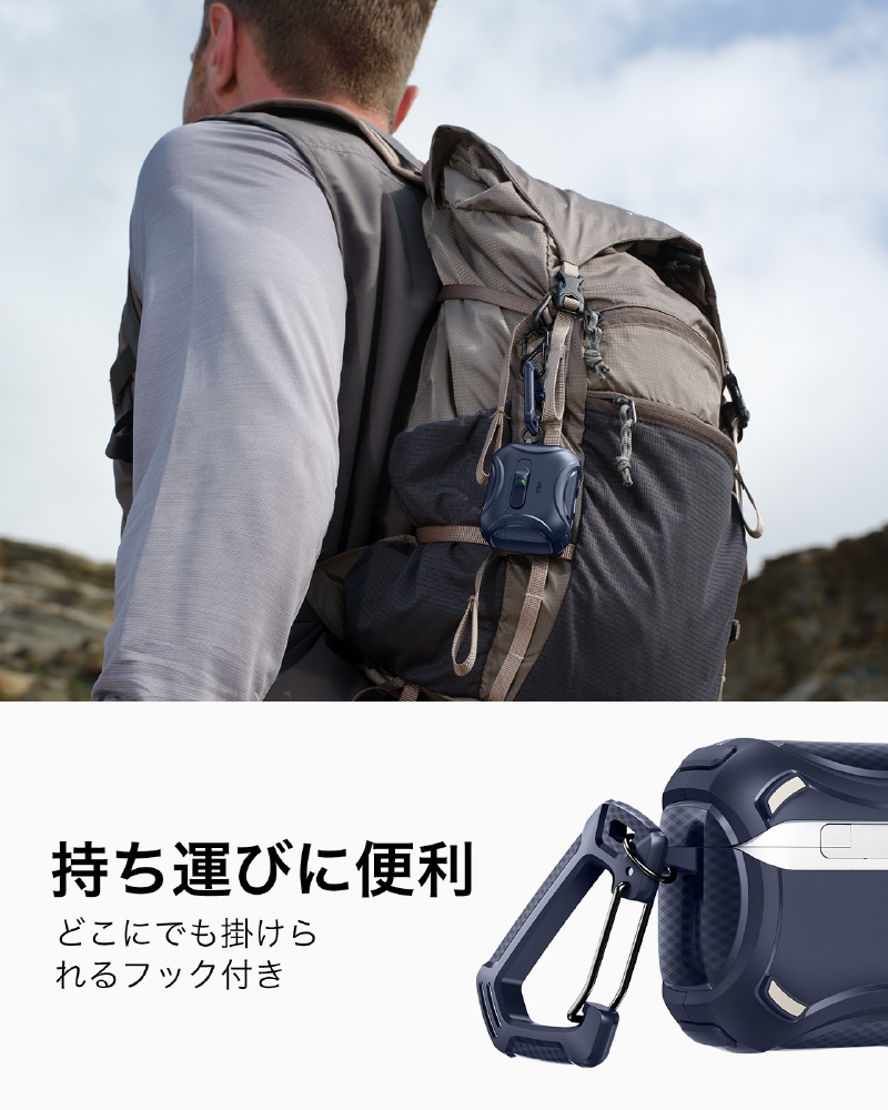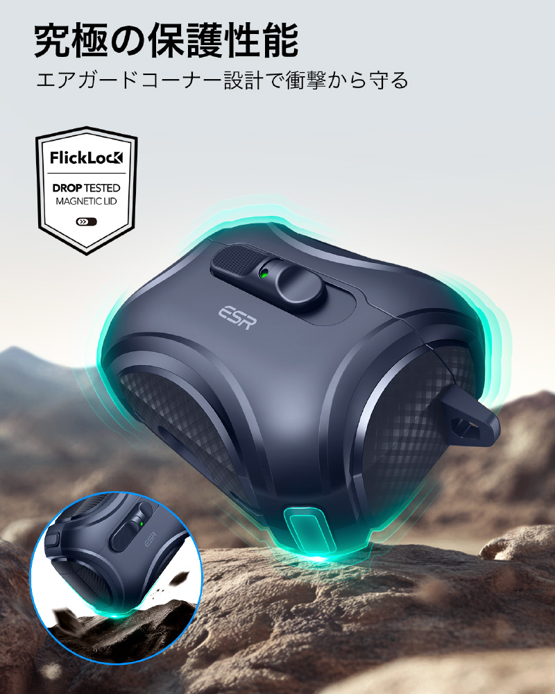 衝撃吸収ポリマーとエアガードコーナーが充電ケースを落下や衝撃からしっかり守ります。