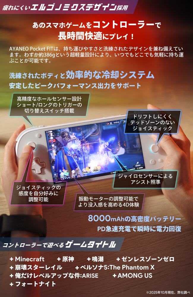 KONKR Pocket FITは、Qualcomm Snapdragon G3 Gen3モバイルプラットフォームを搭載し、軽量なボディながら優れたパフォーマンスを発揮。