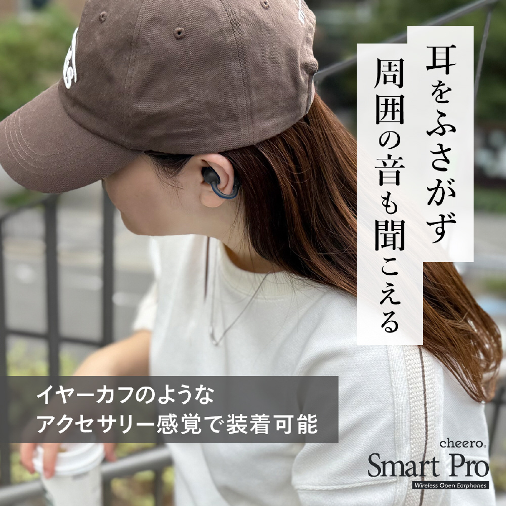 イヤーカフのように装着できるオープン型ワイヤレスイヤホン。圧迫感がなく、長時間の使用でも快適です。