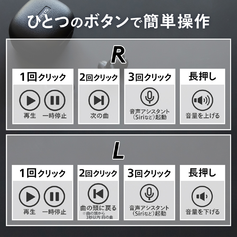 操作ボタンに意図せず触れてしまっても誤操作が起きないよう、タッチセンサー式ではなく物理ボタンを採用。音楽や通話をストレスなく楽しめます。