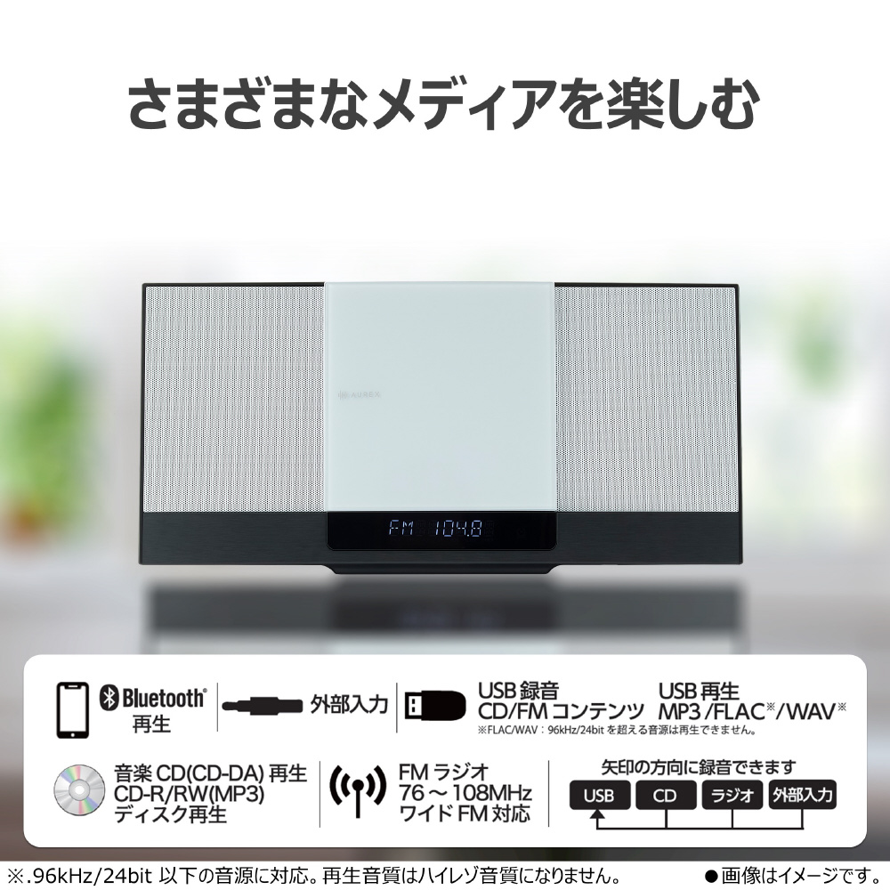 ミニコンポ AUREX ホワイト AX-WSS60(W) [Bluetooth対応 /ワイドFM対応]