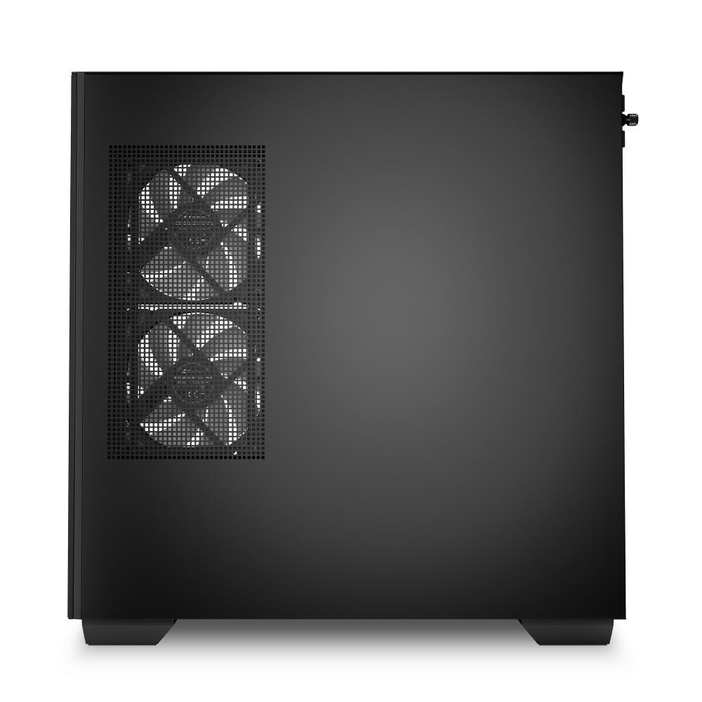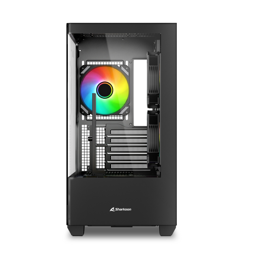 「ELITE SHARK」シリーズは、Sharkoon社のラインナップにおいて最高峰に位置するPCケースです。フロントとサイドが一体化された曲面ガラスパネルによるクリアなピラーレスデザインに加え、最新のBTFマザーボードとの互換性を備えることで、配線の美しさと組み立ての容易さを両立しており、まさにフラッグシップと呼ぶにふさわしいモデルです。