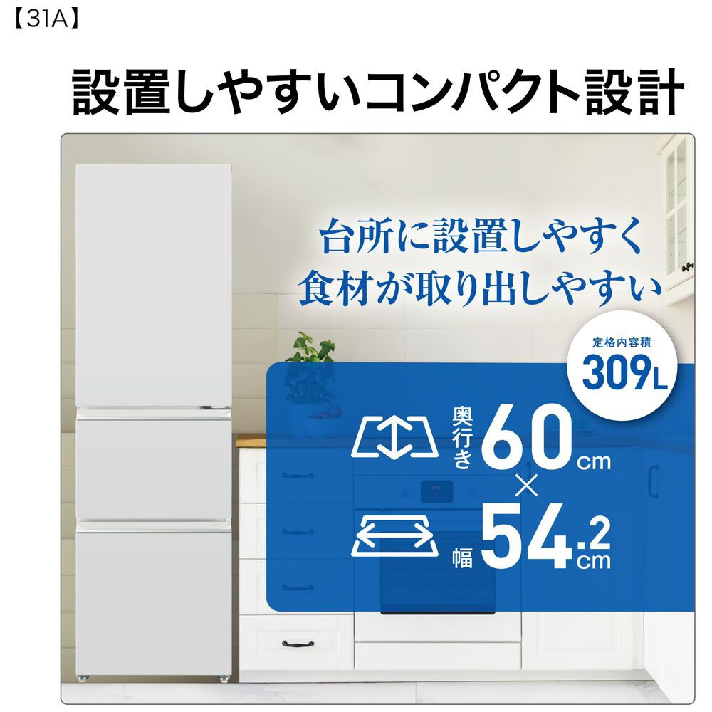 309L3ドア冷蔵庫 ライトグレー AQR-31A(W) [48 /309L /3ドア /右開きタイプ /2025年]【基本設置料金セット】