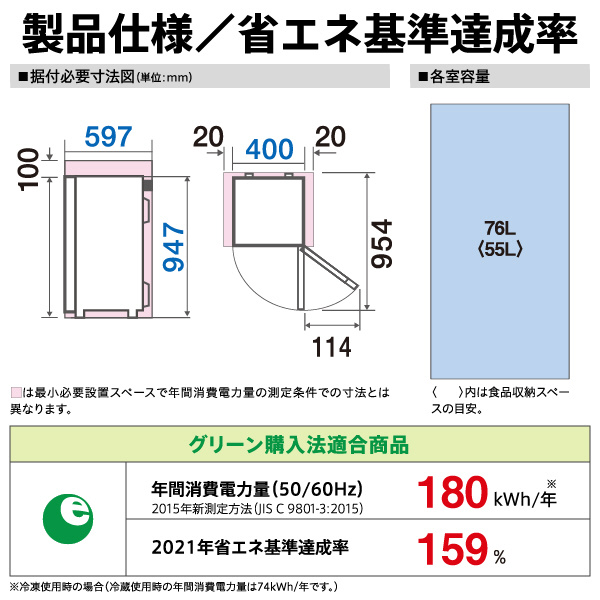 | 省エネ性能(目標年度2021) | ★★☆☆☆ 2.7 |