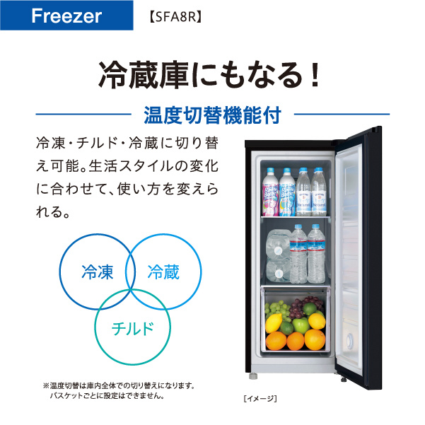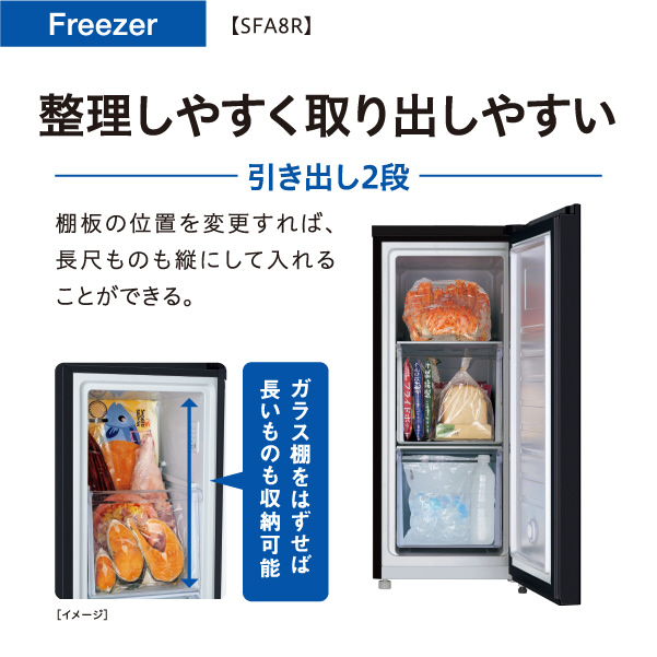 | 商品名 | ファン式冷凍庫 AQUA シャインブラック AQF-SFA8R(K) [40.0cm /76L /1ドア /右開きタイプ /2025年] |