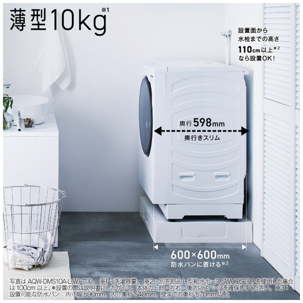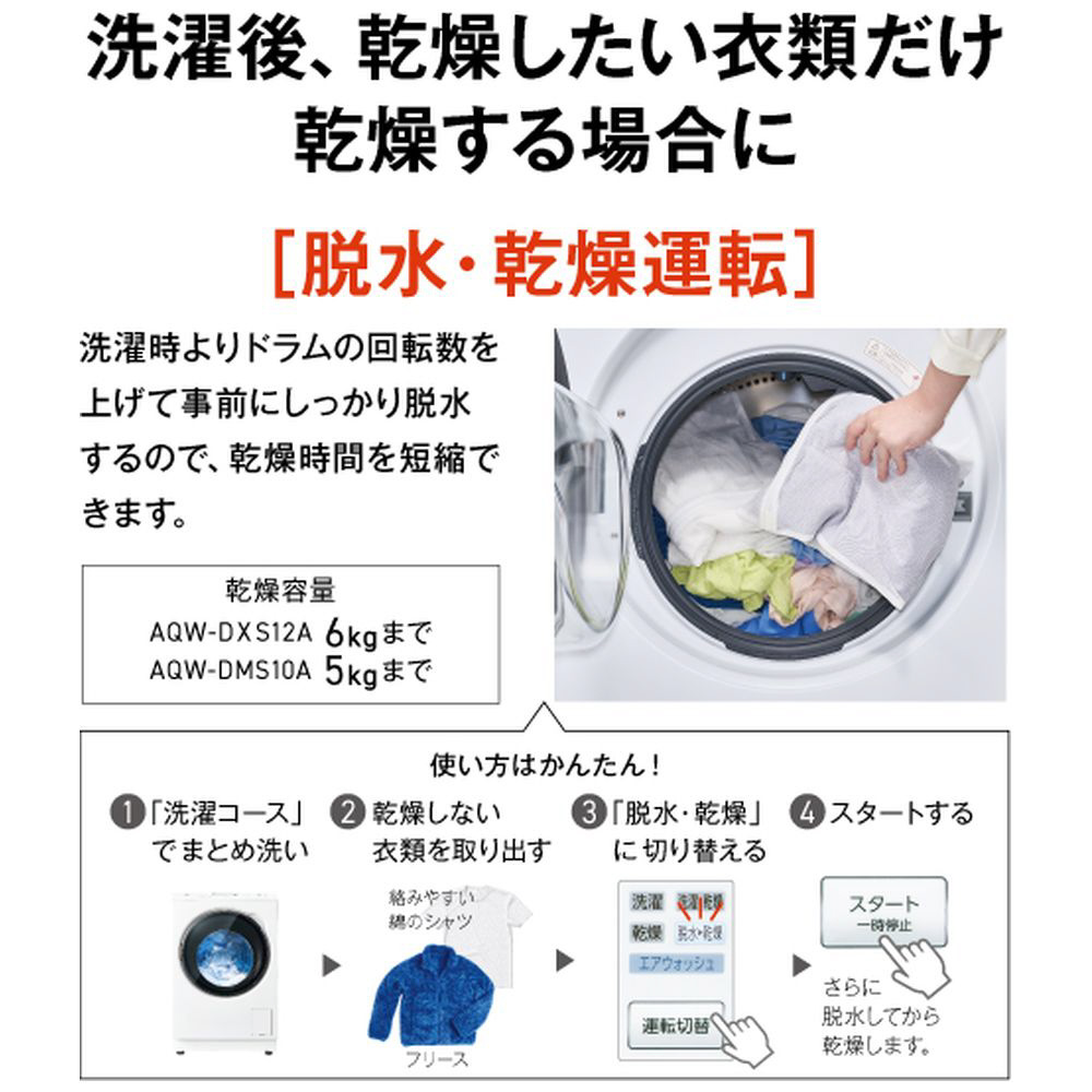 | 商品名 | ドラム式洗濯乾燥機 AQUA サファイアブラック AQW-DMS10A-L(K) [洗濯10.0kg /乾燥5.0kg /ヒートポンプ乾燥 /左開き] |