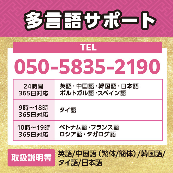 ベトナム語・フランス語・ロシア語・タガログ語:10時〜19時:365日対応
