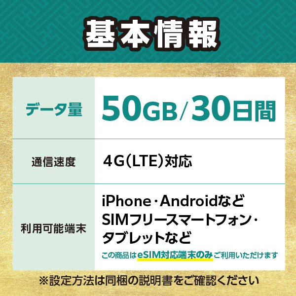 Tourist eSIM for Japan 50GB 30日間 [マルチSIM /SMS非対応]