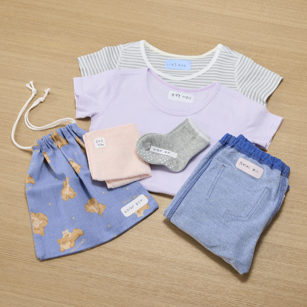 ●水性ペン、プリンターはご使用いただけません。油性お名前ペンをご使用ください。種類によっては書いた文字がにじんだり、生地に移ったりする場合がありますのでご注意ください。
