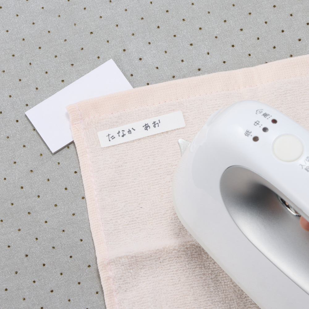衣類などの布地にアイロンを使って接着することができるラベルです。接着後のラベルは約150回の洗濯・乾燥やドライクリーニングに耐えることができます。業務用の乾燥にも対応いたします。お子様の入園入学時や、介護施設に衣類を持ち込む時など衣類への名入れが必要な場合に便利です。